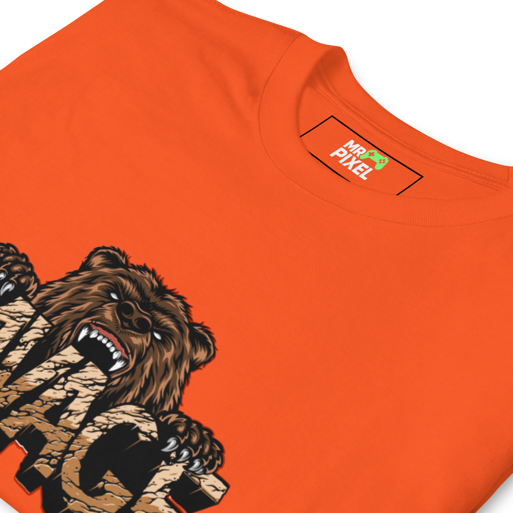 Meet the new staple T-shirt for your wardrobe! This vibrant orange tee, featuring the bold "SAVAGE" print and a bear on the back, is designed to make a statement.